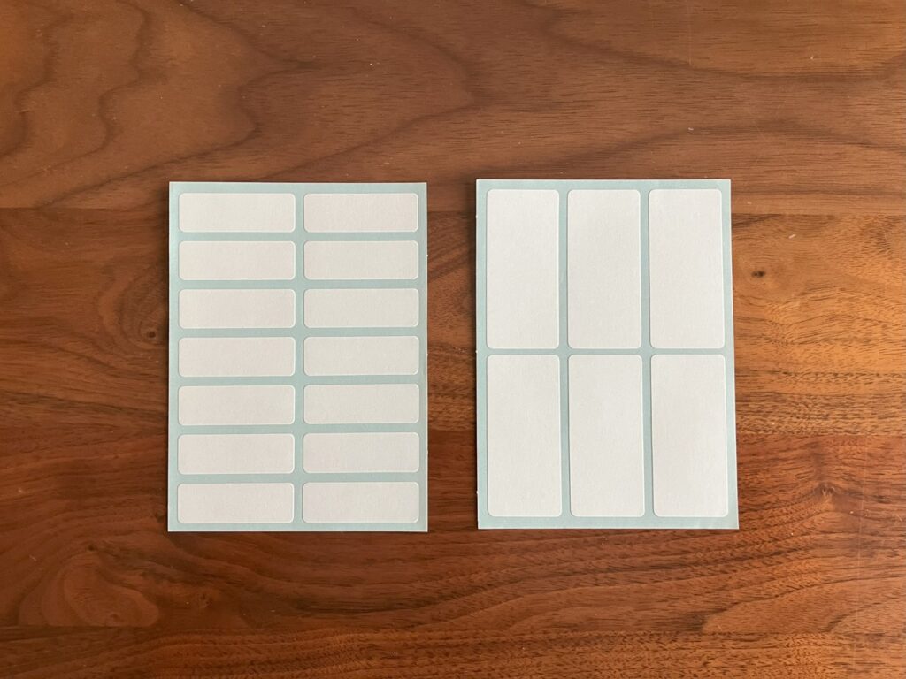 - ラベルシールは剥がしやすいタイプ、大小2種使いがおすすめ