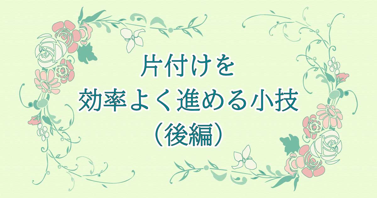本日は、片付け現場で作業効率を上げる小技の中でも、